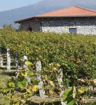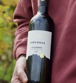 La cantina è un edificio a base esagonale, sviluppato su due livelli, circondato dai nostri vigneti. Cantina e territorio sono il cuore pulsante della nostra attività e proprio per questo abbiamo voluto rappresentarli sulle nostre etichette, riportando l’esagono come simbolo della struttura e il profilo del monte Concarena come espressione del territorio.